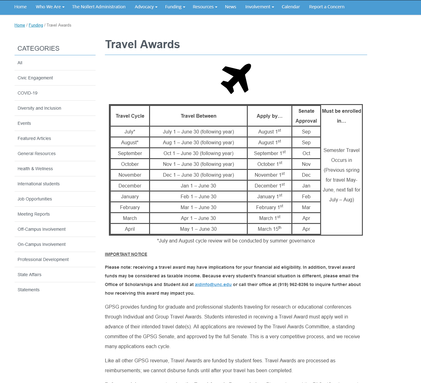 The new bill had passed and there were important changes made to the travel funds website, crucial things such as the maximum individual awards and the fact that travel awards can now be combined with other awards. Both of these were not updated on the page, which would be misleading the users for the wrong reasons.